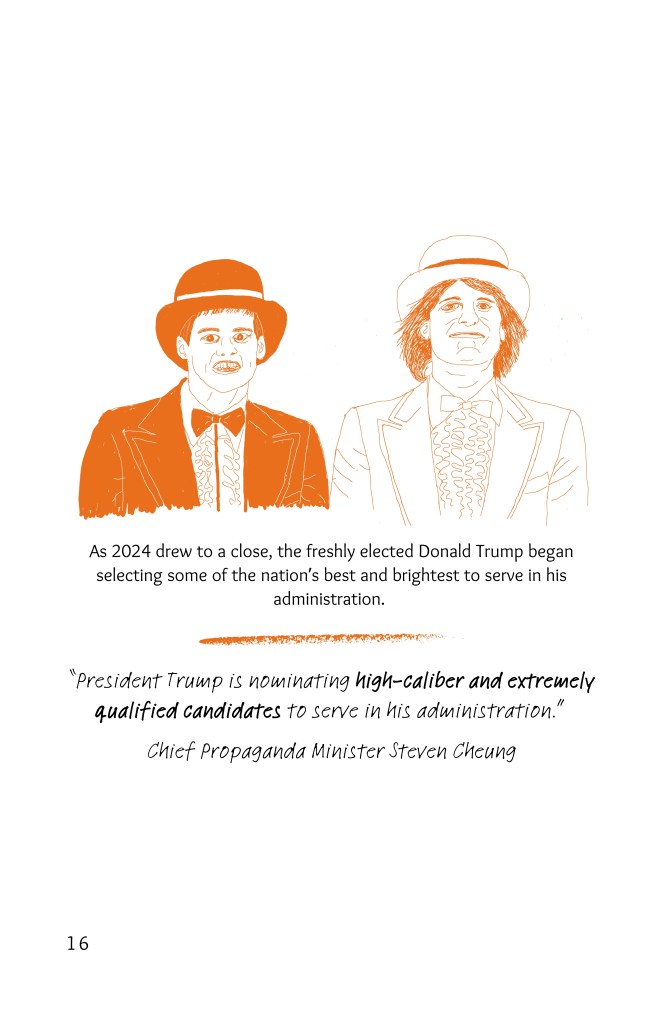 Lawrence captures the well-known tropes of Jewish space lasers and cancer-causing windfarms but also regales us with lesser-known tales, such as the decades-long “finger feud” with a Vanity Fair editor in this book illustrated with hilarious, Shel Silverstein-esque graphics. Lawrence also shares the backgrounds of the recent crazy picks, er, we mean cabinet picks, for the 2025 Trumplican White House. Buckle up. This is just the first in what’s sure to be a series of books because we all know the Trump chaos is just getting started.